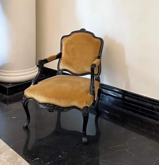 A sophisticated chair inspired by traditional European craftsmanship. Intricate joinery, balanced proportions, and refined finishing details give it a subtle yet distinguished character.