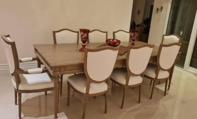 A coordinated dining set inspired by classic European styles. The handcrafted table and matching chair feature refined edges, subtle curves, and durable construction, offering an elegant setting for formal dining.