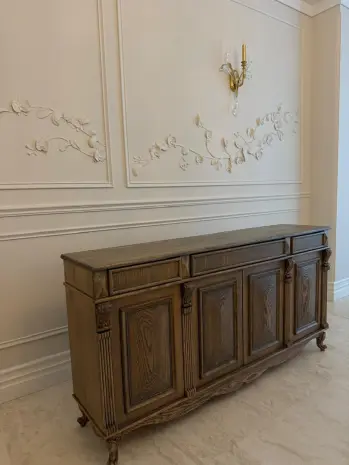 An elegant console with traditional contours and careful craftsmanship. Its proportions make it suitable for spaces that desire subtle ornamentation and timeless form.
